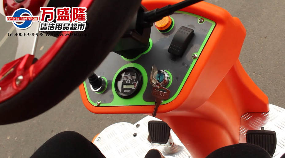 金洁马路扫地车的操作十分简单,操控面板标识清楚,一目了然,很容易就学会。