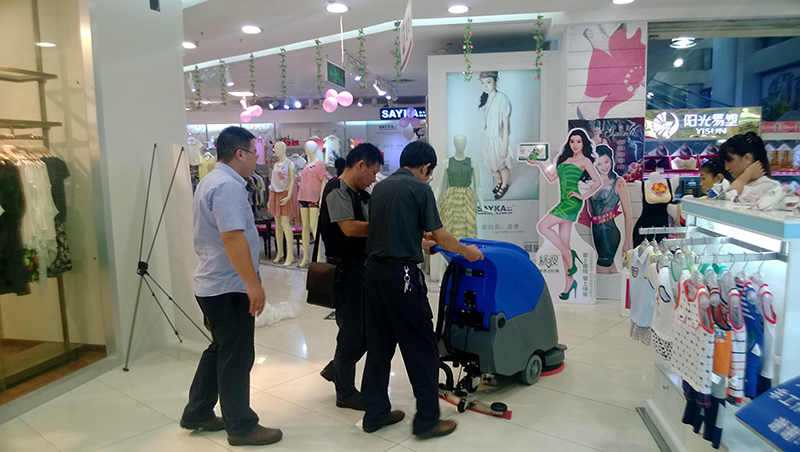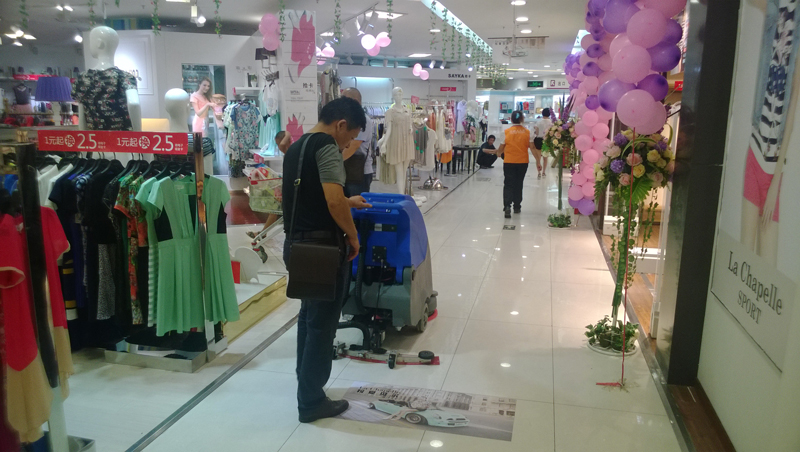 我们还为客户提供了现场试机的服务,客户在商场使用效果,对洗地机非常满意,最终达成合作。