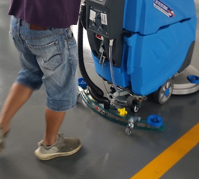 楼宇过道等地方地面较光滑,一般为地板砖、水磨石、大理石、花岗石等材料.而且大型清洁工具不方便上下。使用小区洗地机来清洁,针对不同地面材料还可以加入不同的清洁剂,先洗后吸,先把地面洗干净,后把污水吸入污水箱。