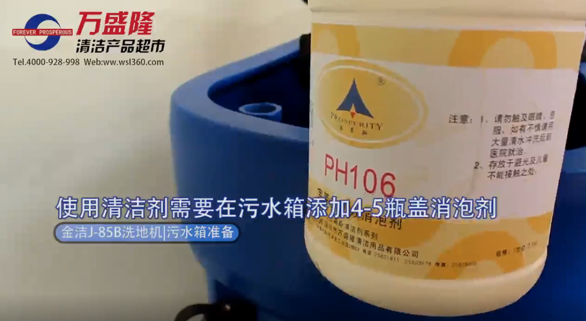 启动手推式洗地机机器前,将消泡剂倒入机器污水箱内。每10毫升的水量建议加入25-35ml的消泡剂使用量。