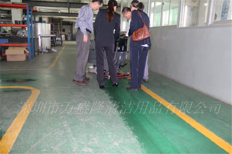 联系到我们咨询有没有适合的洗地设备。经过对其车间面积、地面、车床布置等全面的了解,我们推荐了金洁J-20W手推式洗地机。