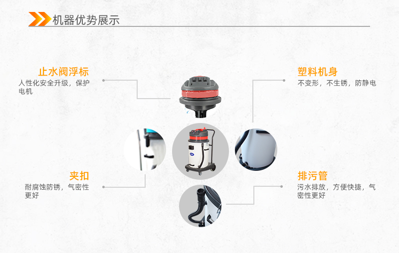 内置强劲向应力马达,吸尘吸水效果都非常理想,多用途的随机附件,组合方便,适用于各大面积较大场所。