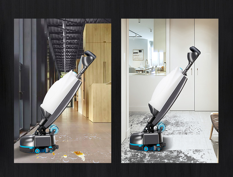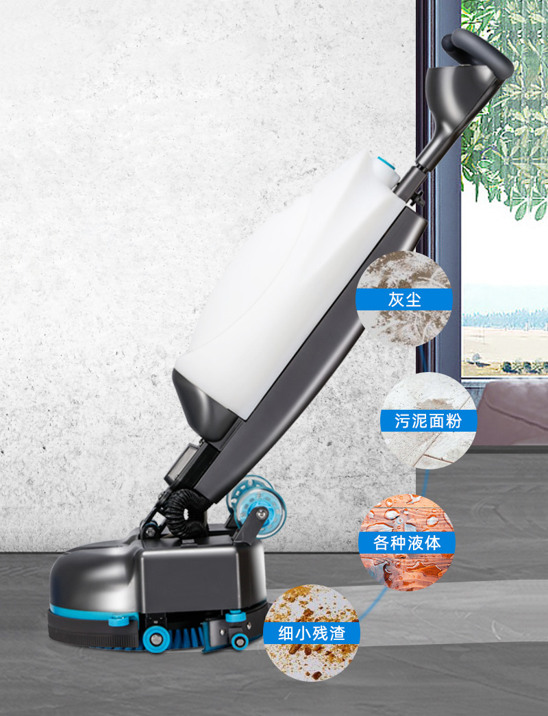 洗地机的工作原理是:通过喷水、单刷方式,一次性将地面污渍清洗干净,仅需一人就能轻松完成日常保洁,适应新时代快节奏的生活生产理念.