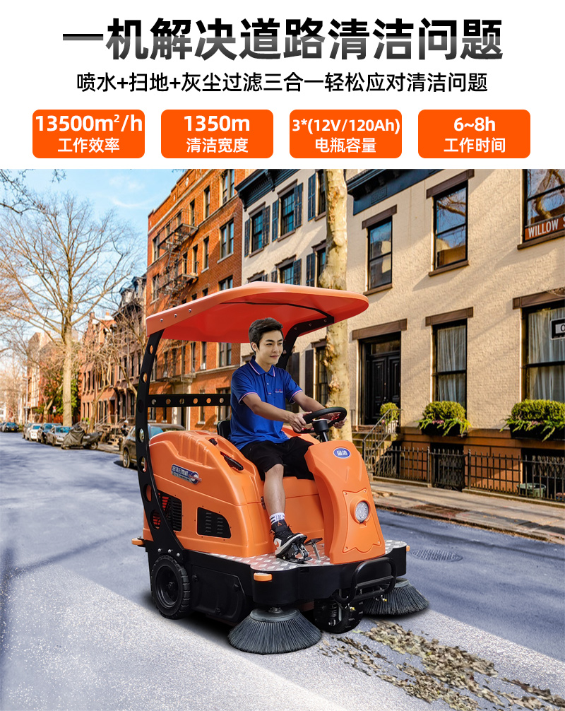 小区扫地机又名小区扫地车主要将喷雾,扫地、吸尘相结合的一体化垃圾清扫设备,具有工作效率高,清洁成本低,清洁效果好,安全性能高,经济回报率高、使用范围广等优点。我司J-XS1350扫地机清扫宽度1.35米,非常适合小区道路的清扫,针对小区落叶,泥沙,石子,灰尘等清扫效率高,清扫效果好。机器宽度适中,能够针对不同的道路进行作业适用于物业小区、厂区、公园、街道、学校等。