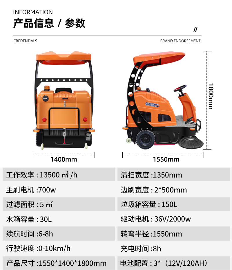 1、小区扫地机采用后驱驱动爬坡能力强<35°轻松上坡没压力轻松解决各种使用场景