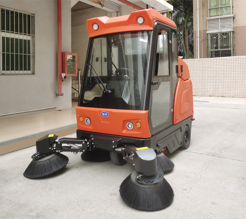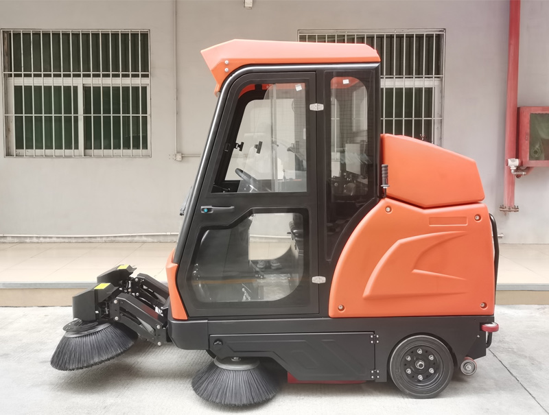 驾驶式扫地机装置了一个滚柱式的主刷,除了主刷外、驾驶式扫地机大部分都会多配置两个边刷,当车辆在清扫地面时、以便将地面的垃圾和沙土,带到主刷能扫到的位置,从而将地面的垃圾清扫干净。