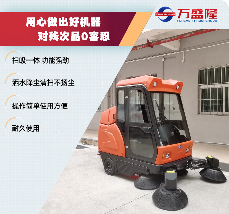 万隆盛金洁扫地机发展已有18余年,绿色化厂房,专业生产技术、实力雄厚,设备原材料严格把控,专业技术人员经过层层质检,品质稳定 可以放心选购,且厂家直销,金洁扫地机价格更优惠,您可随时联系万盛隆清洁销售经理4000928998,详细了解金洁扫地机报价单,一台也是优惠出厂价。
