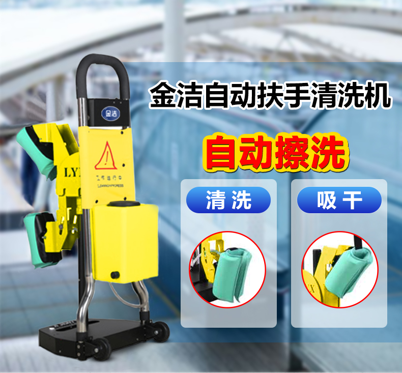 扶梯清洗机是一款设计紧凑的设备,可用于各种类型的扶手电梯,机器可清洗+吸干,配备专用的清洗刷子,能够对自动扶梯实现清洁,同时将污物及污垢回收到污水箱。